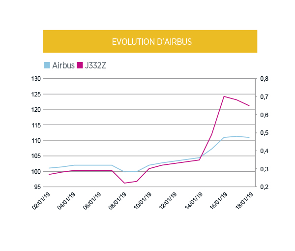 Le cours de l’avionneur s’est ainsi envolé de 20% entre le 15 janvier et le 15 février faisant le bonheur des détenteurs de produits à effet de levier haussier sur le titre. Le Warrant Call J332Z sur Airbus de prix d’exercice 110 euros et de maturité juin se hisse sans peine sur la troisième marche du podium de nos produits ayant le mieux performés le mois dernier avec une performance de 400% ! Ce Warrant avec un delta de 52% reste aujourd’hui parfaitement adapté pour un investisseur désireux de se positionner à la hausse du titre. Pour les plus sceptiques qui souhaiteraient investir sur un retournement de tendance, notons le 4275Z Warrant Put de maturité juin, de prix d’exercice 110 euros proposant un effet de levier de 7.5.